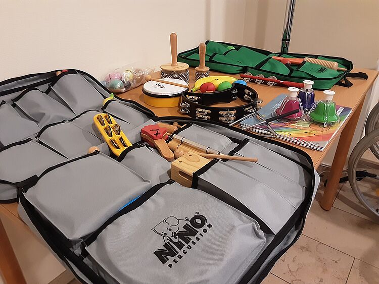 In unserem Seniorenzentrum in Wersten betreuen wir aktuell 105 Seniorinnen und Senioren, die zum Teil aufgrund ihres hohen Alters in ihrer körperlichen Leistungsfähigkeit eingeschränkt oder pflegebedürftig sind, viele davon sind an einer Demenz erkrankt. Sie alle sollen von den vielen Vorteilen, die Musik bietet, profitieren. Daher wurden nun verschiedene Angebote geschaffen, die regelmäßig stattfinden und allen interessierten Bewohnerinnen und Bewohnern offenstehen. Dank einer finanziellen Unterstützung der Deutschen Stiftung für Demenzerkrankte konnten hierfür verschiedene Instrumente wie eine Gitarre, aber auch Trommeln, Djemben, diverse Kleininstrumente und Liederhefte angeschafft werden.