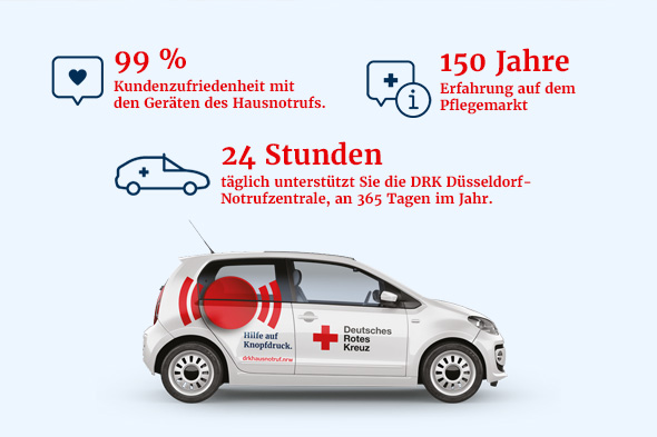 Das Deutsche Rote Kreuz Düsseldorf bietet Ihnen mit dem Hausnotruf ein bewährtes Sicherheitssystem, das Ihnen und Ihren Angehörigen ein beruhigendes Gefühl gibt. Im Notfall sind wir sofort für Sie da – 24 Stunden am Tag, 365 Tage im Jahr.